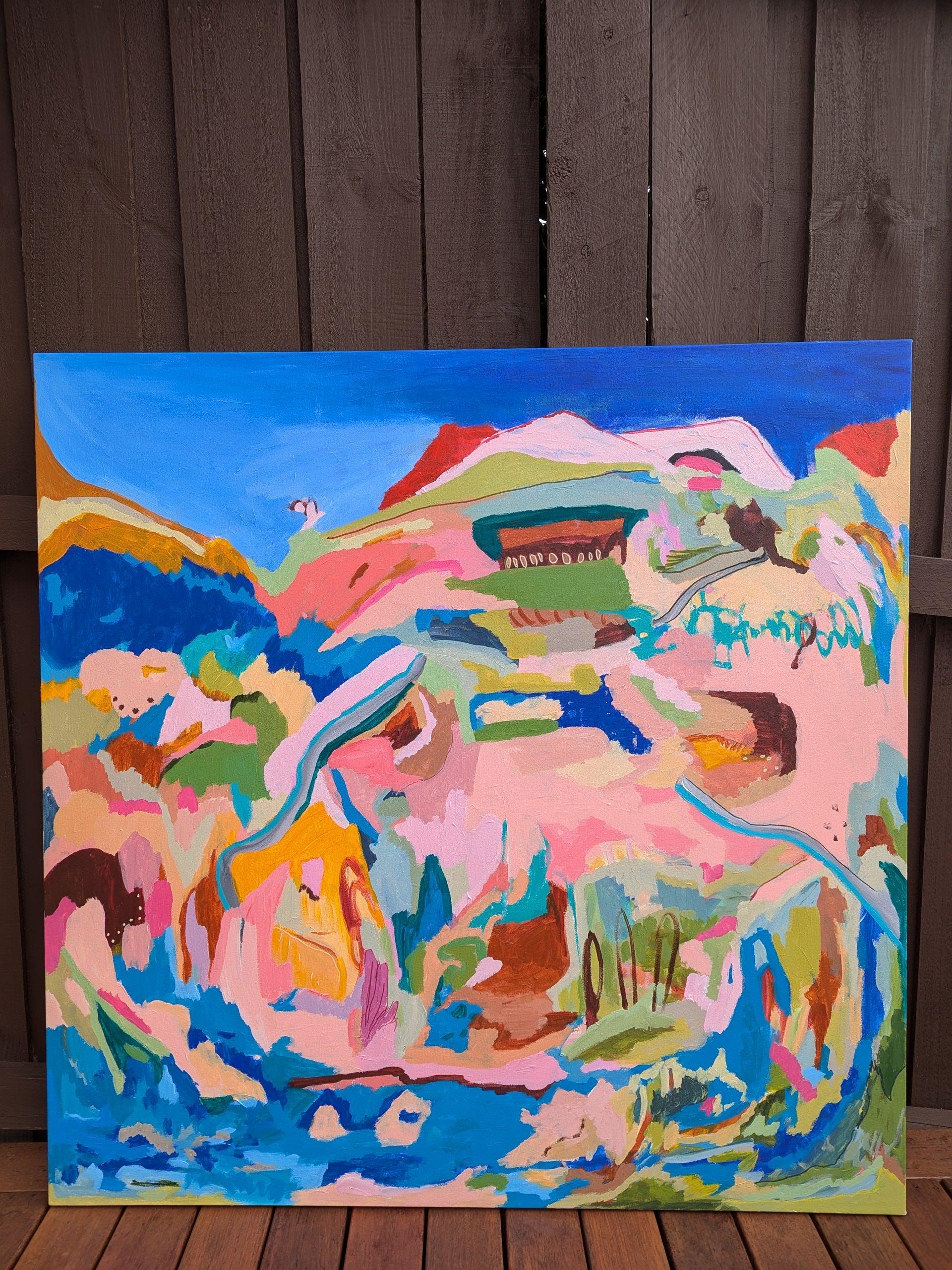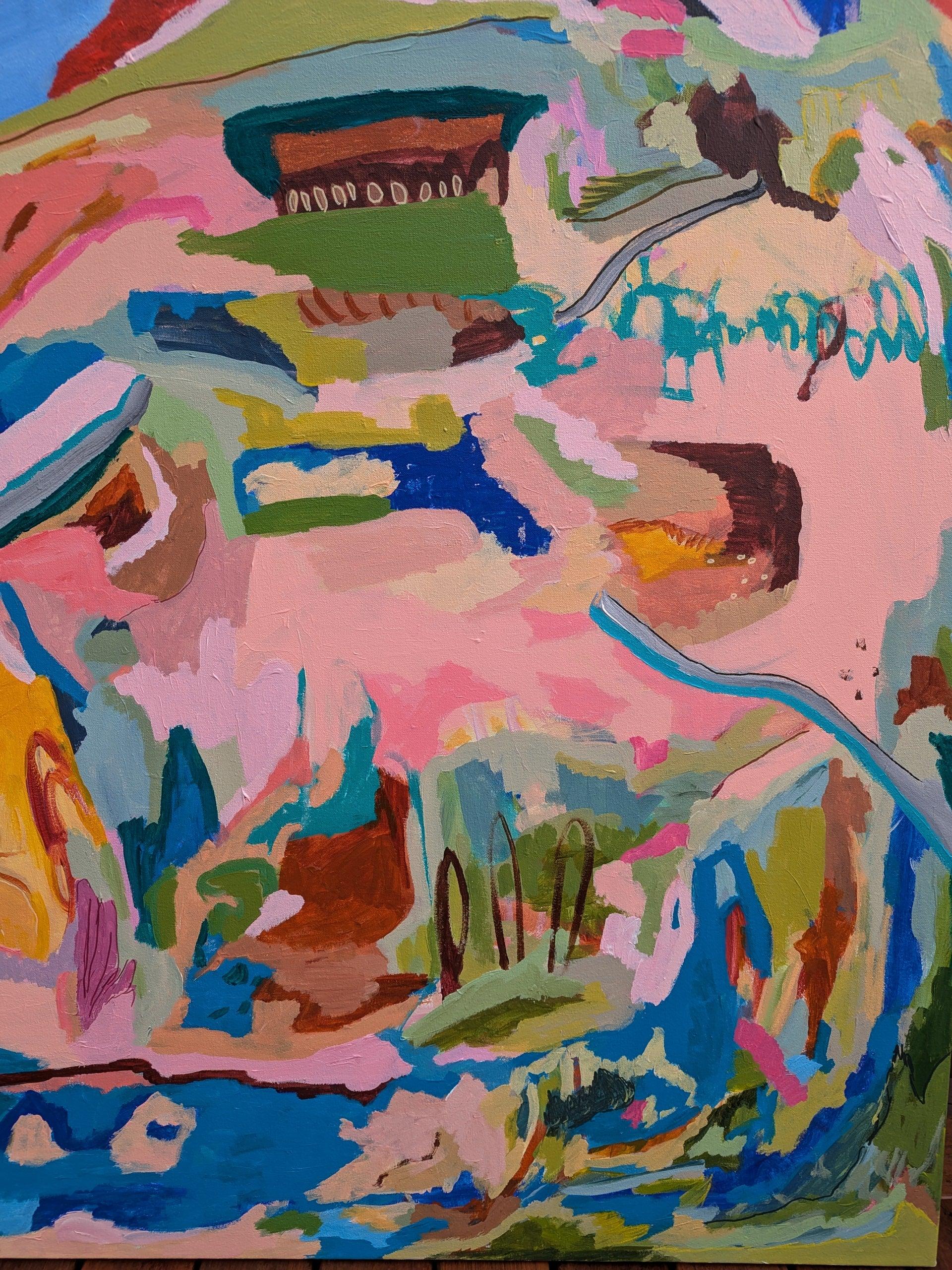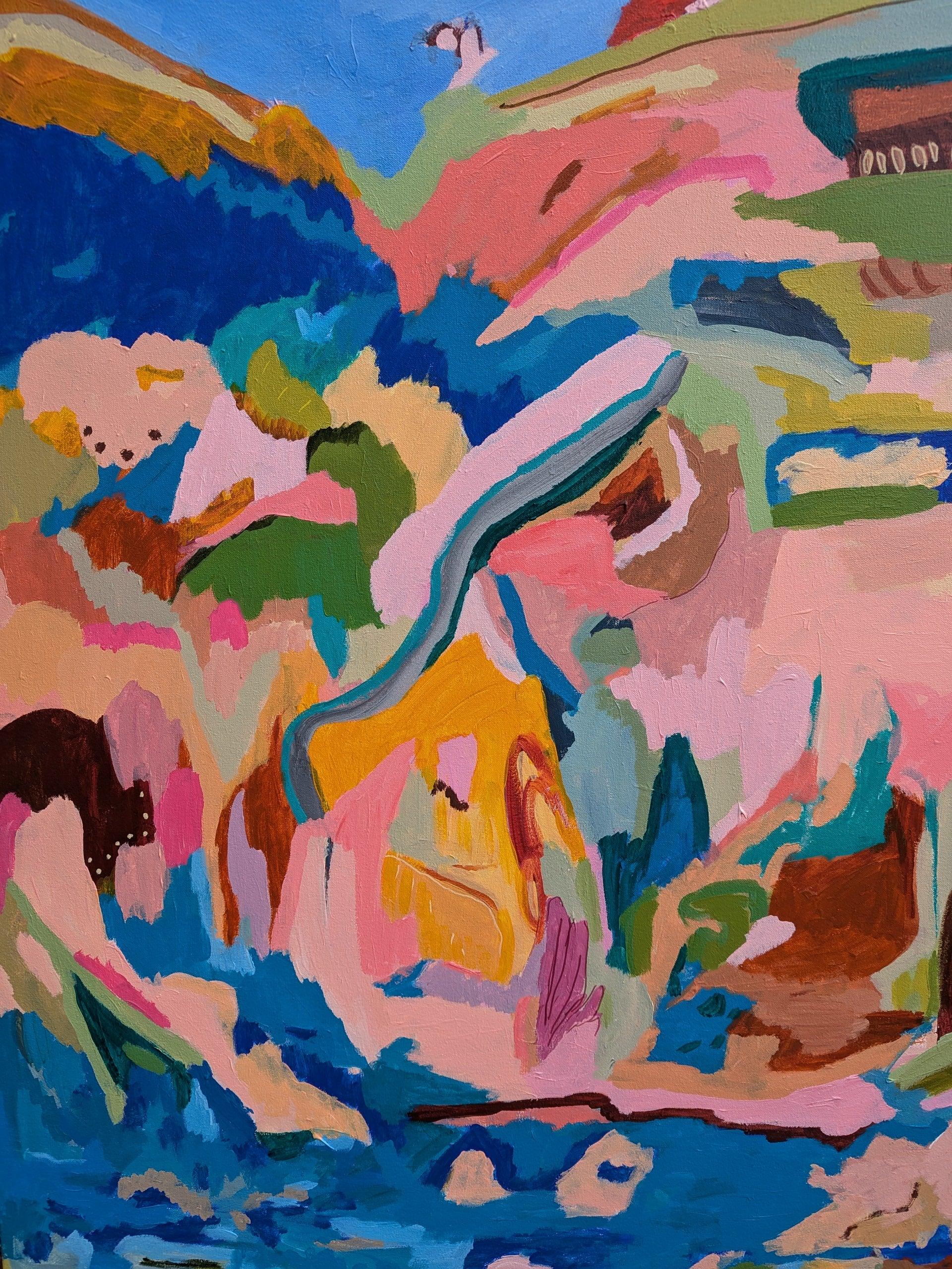 This piece explores the dynamic interplay of colors and forms found in nature, translating the essence of a landscape into abstract shapes and hues. By breaking down the landscape into expressive color fields and flowing lines, I aimed to capture the emotional resonance of nature, rather than its literal appearance. The viewer is encouraged to wander through the composition, finding their own meaning and connections within the layered colors and shapes, much like the personal experience one might have when immersed in the natural world.