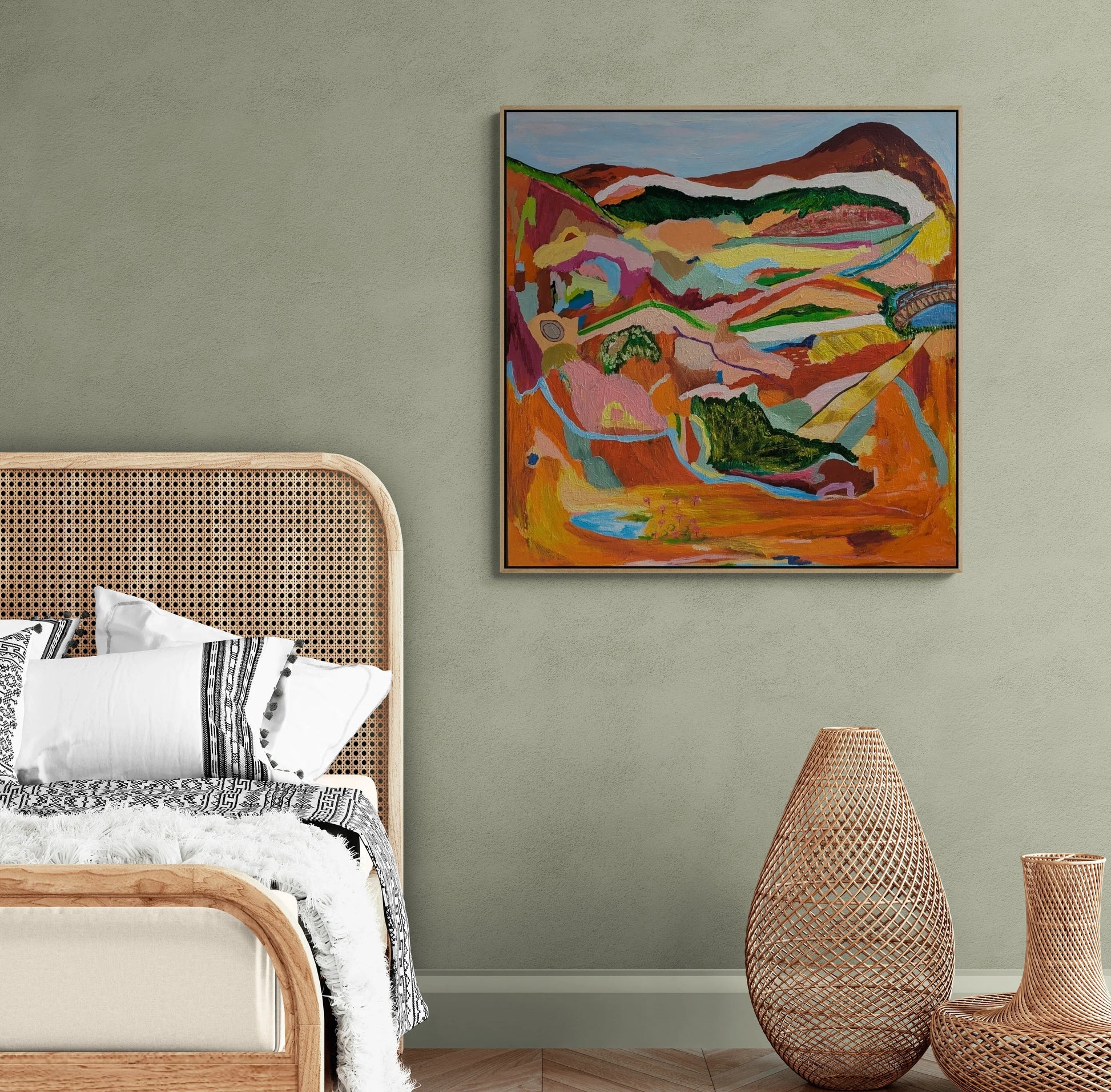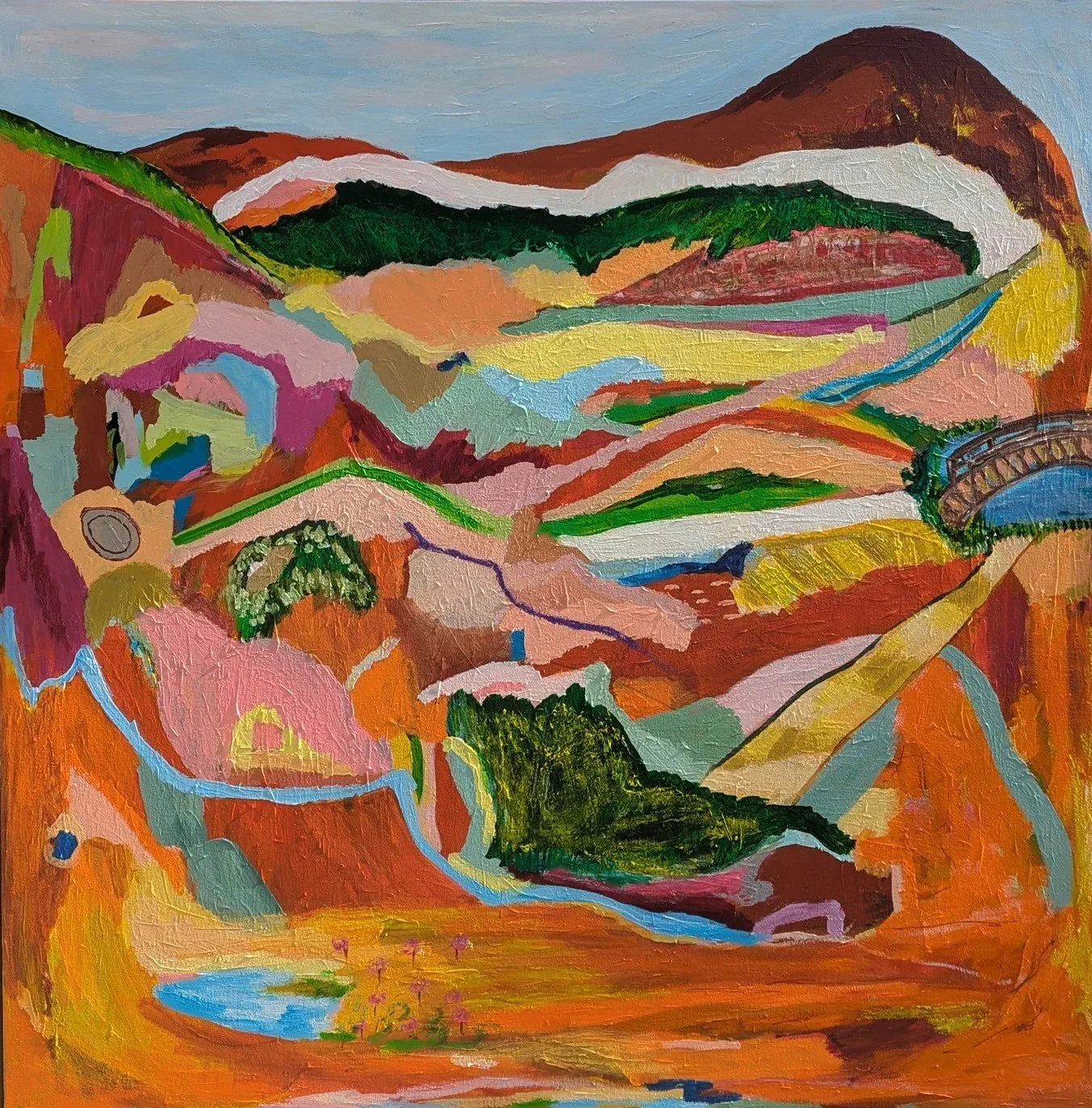 "Hope and Happiness" is a visual journey through an emotional landscape — where color becomes a language of feeling, and form is guided by instinct rather than precision. Inspired by the Australian terrain and my inner responses to nature, this abstract landscape speaks to the quiet resilience that lives beneath our chaos, and the moments of unexpected joy that surface like wildflowers in dry soil. The vivid palette mirrors a world both real and imagined — where soft greens hint at renewal, radiant oranges warm the earth, and sky blues offer breath and release. Layered with acrylic, grounded with charcoal, and softened with oil sticks, this piece was built over time — just as hope often is. I painted this during a time when I needed a reminder that even through messiness and uncertainty, there’s beauty waiting to be found. This work is a celebration of those small, precious glimmers — of happiness not as a destination, but a presence we can return to.