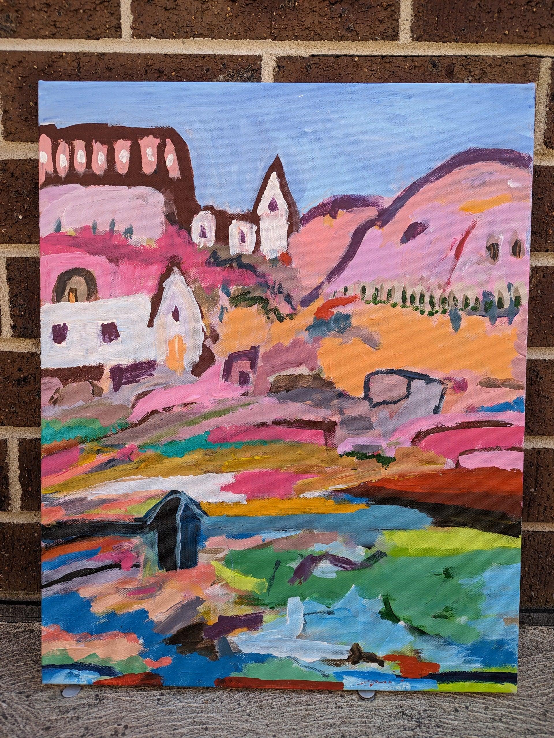 - This painting is on stretched artist quality canvas with an internal wooden frame