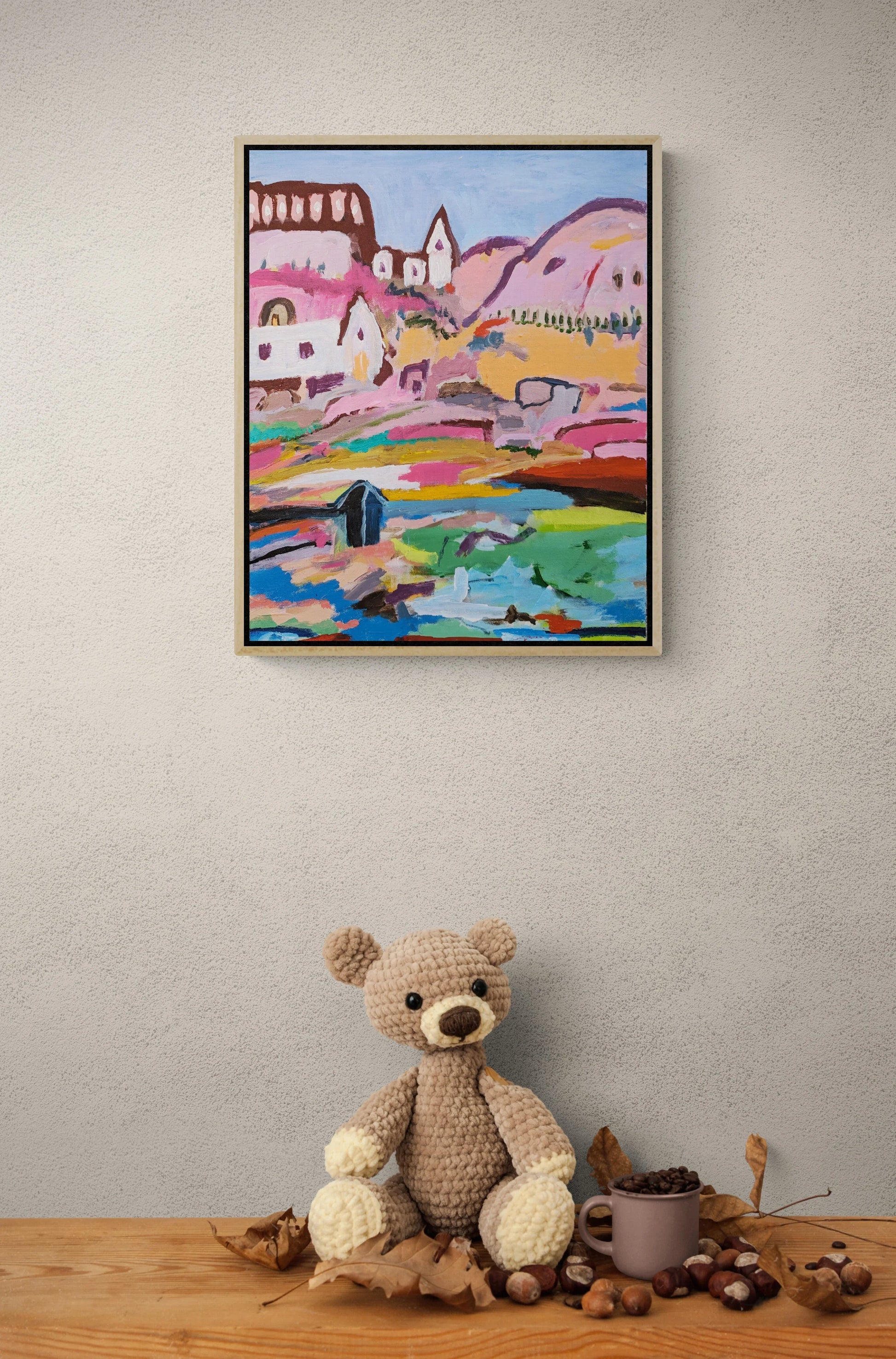 The painting is a representation of Alpana's own interactions with the environment rather than a physical reproduction of any particular scene. Gives Happy vibes of holidaying with family and Friends , Camping, walking, bird watching, fishing, kayaking and much more. Spending Quality Time.