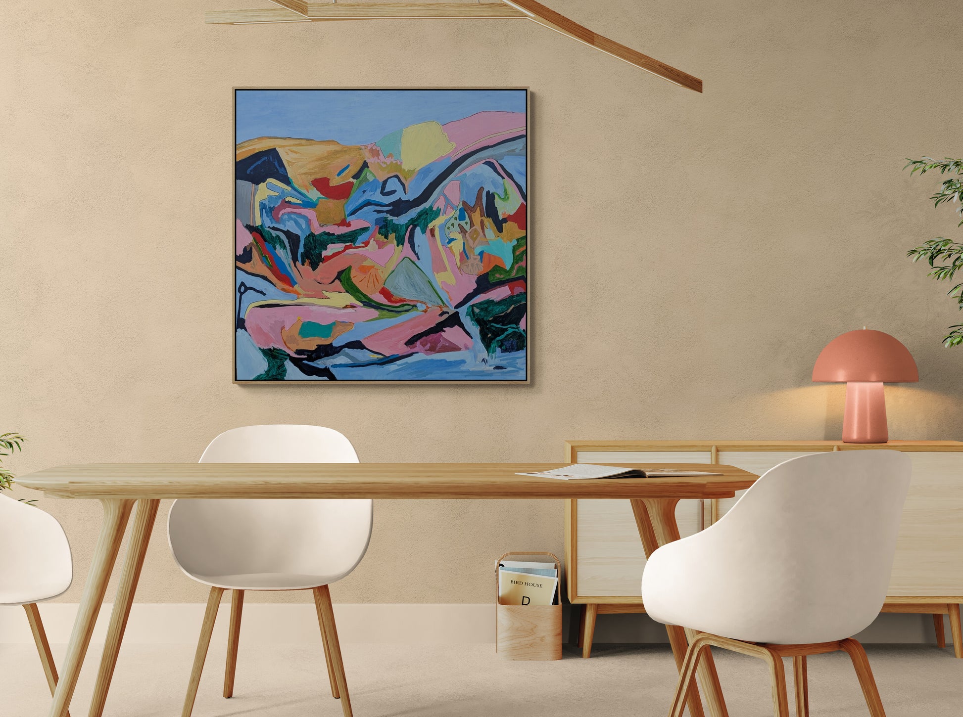 Through expressive colour fields and spontaneous gestural marks, Rai translates the sensory experience of the landscape into a visual language of feeling. Earthy ochres meet cool blues and tender pinks, mirroring the coexistence of strength and serenity that defines the Australian environment.