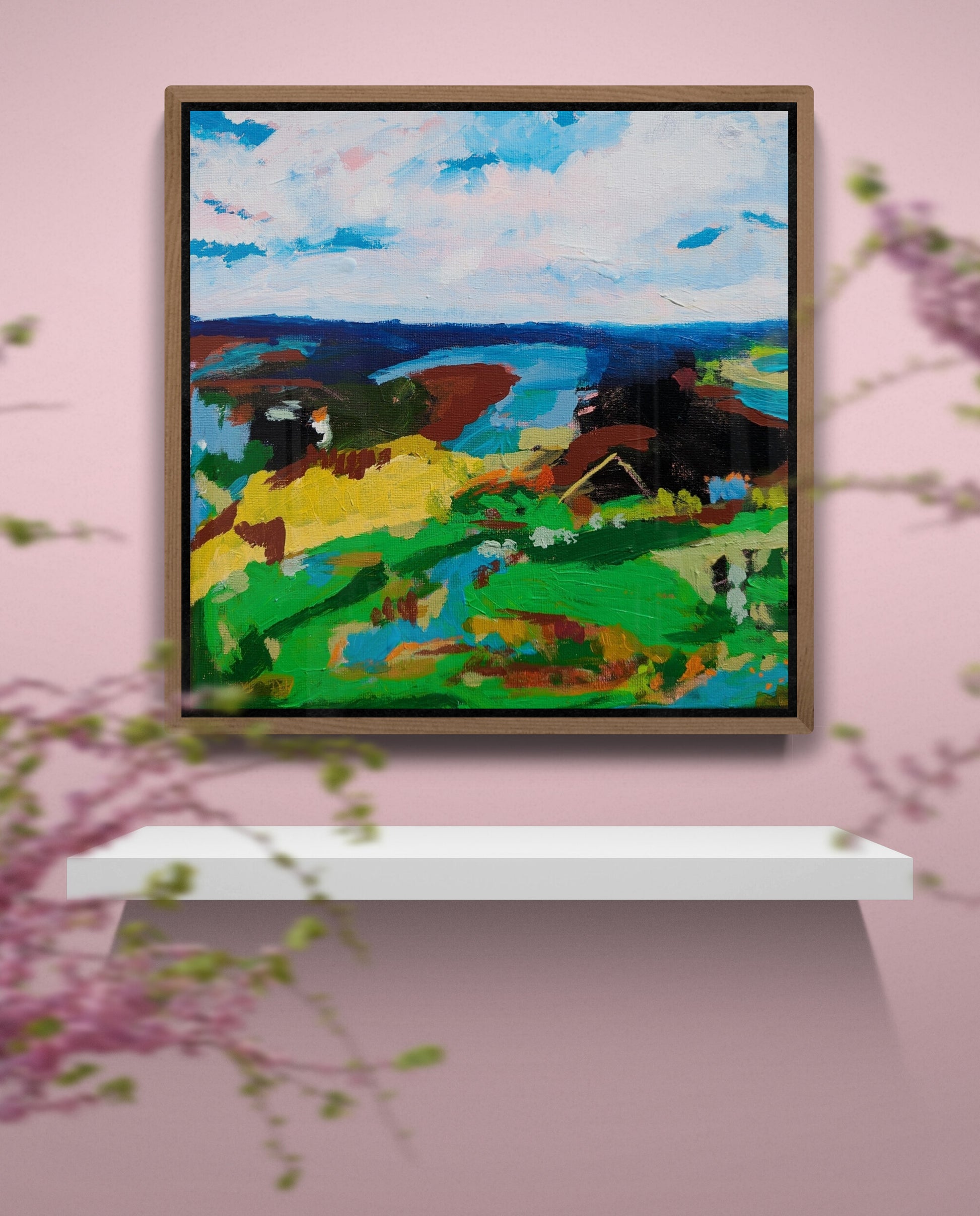 This piece asks the viewer to pause and let their eyes wander, to feel the pull of open landscapes and the serenity that follows. Take Me There becomes not just an artwork, but an invitation—to journey inward, outward, and beyond.