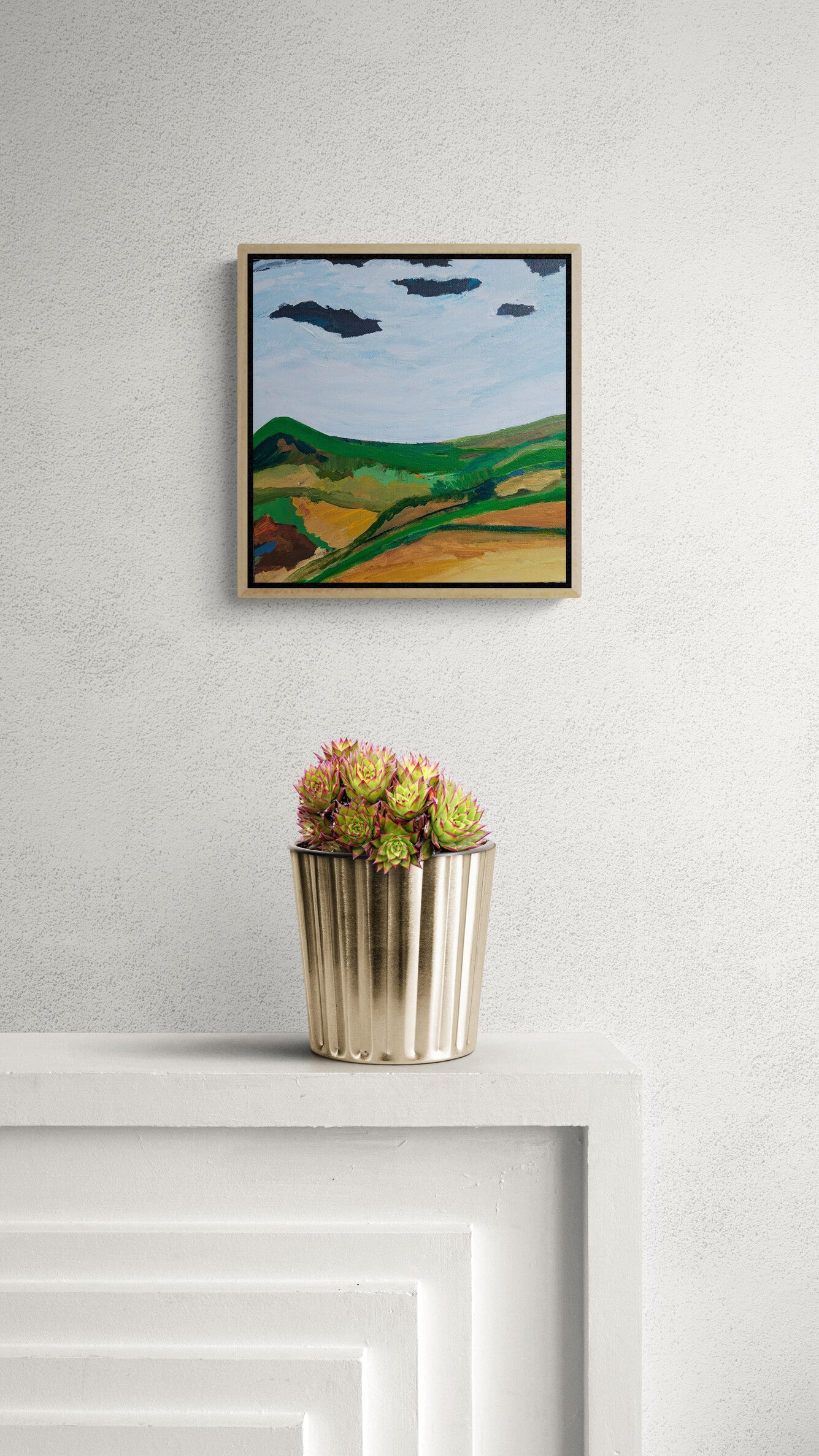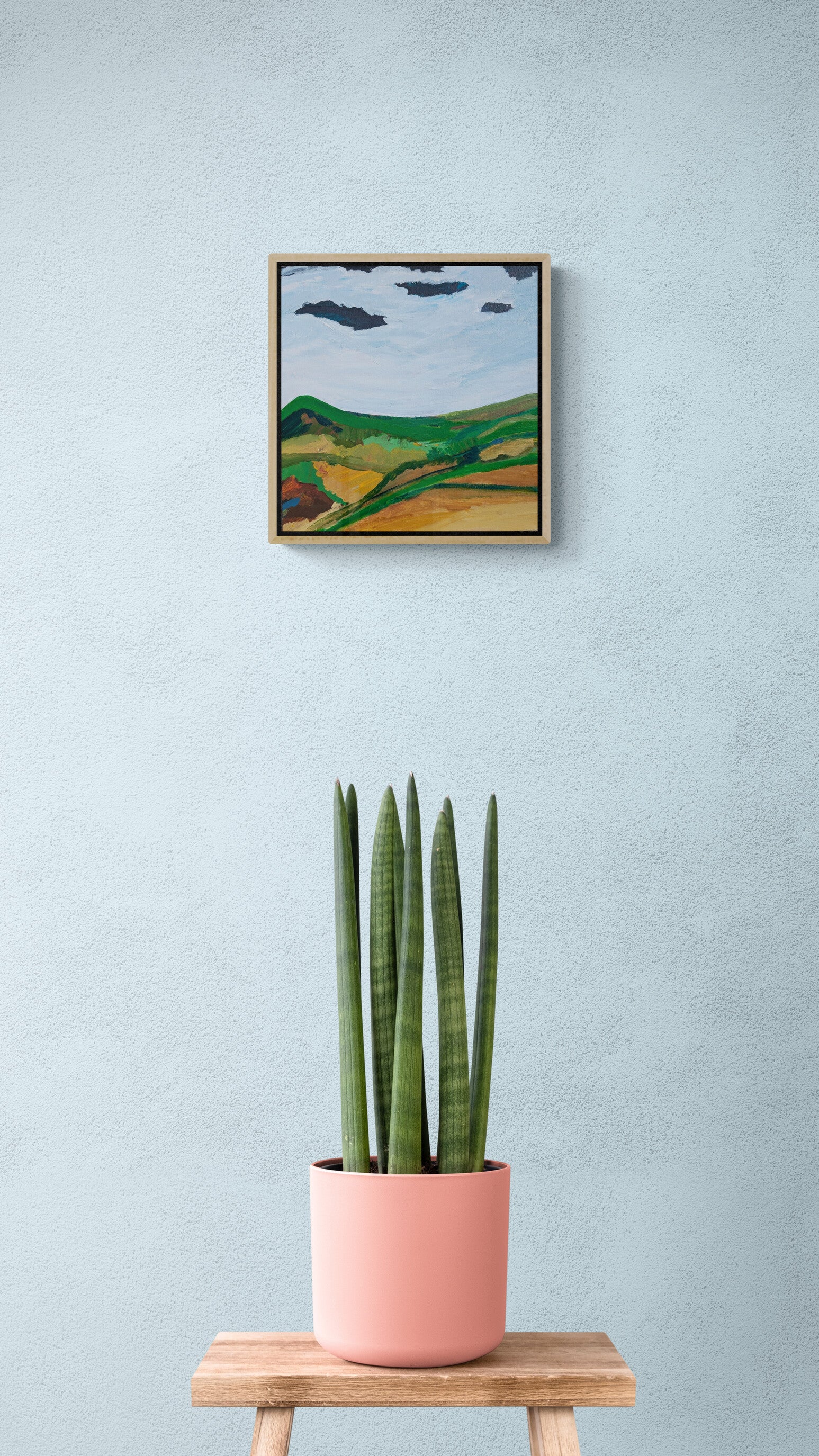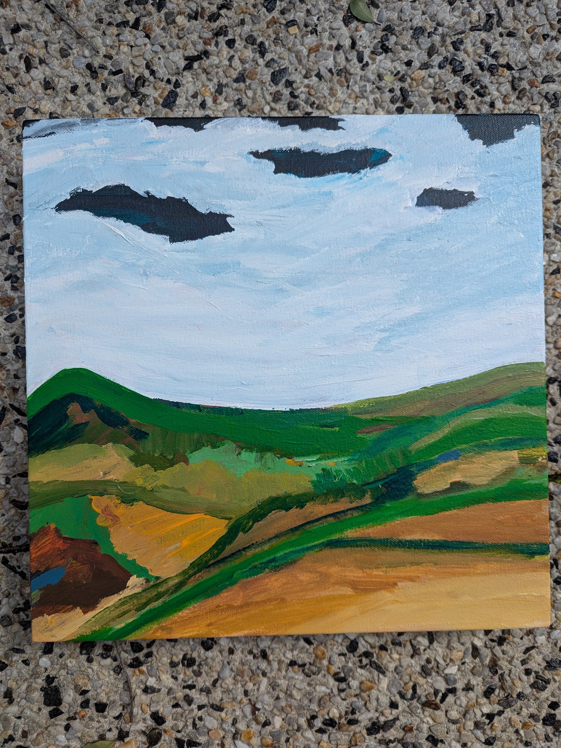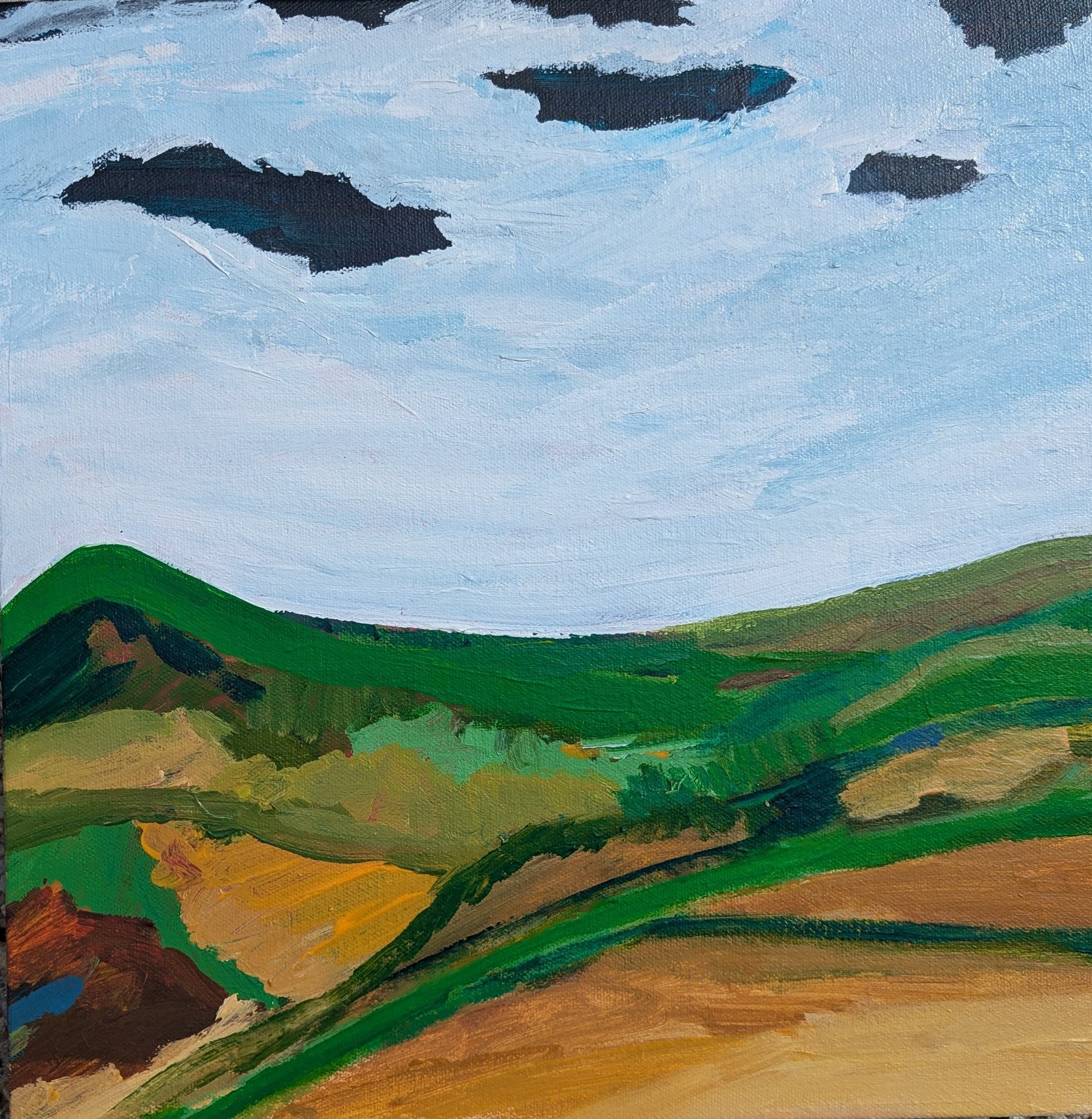 The End is New Beginning captures the quiet poetry of transition, where endings hold the seeds of renewal. Inspired by the shifting landscapes of life and nature, this painting reflects the balance between closure and growth, shadow and light. The rolling greens and earthy tones speak of grounded strength, while the sky—ever-changing—suggests the infinite possibilities that lie ahead.