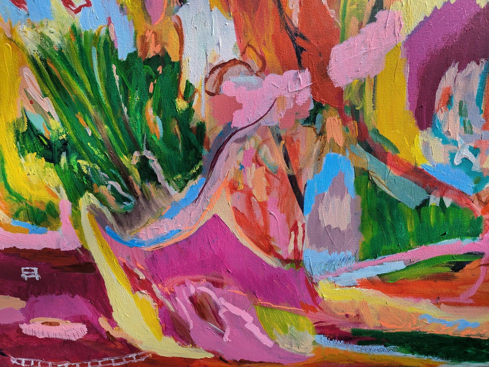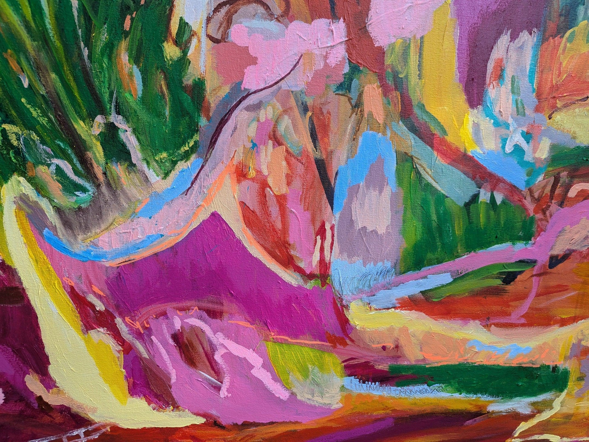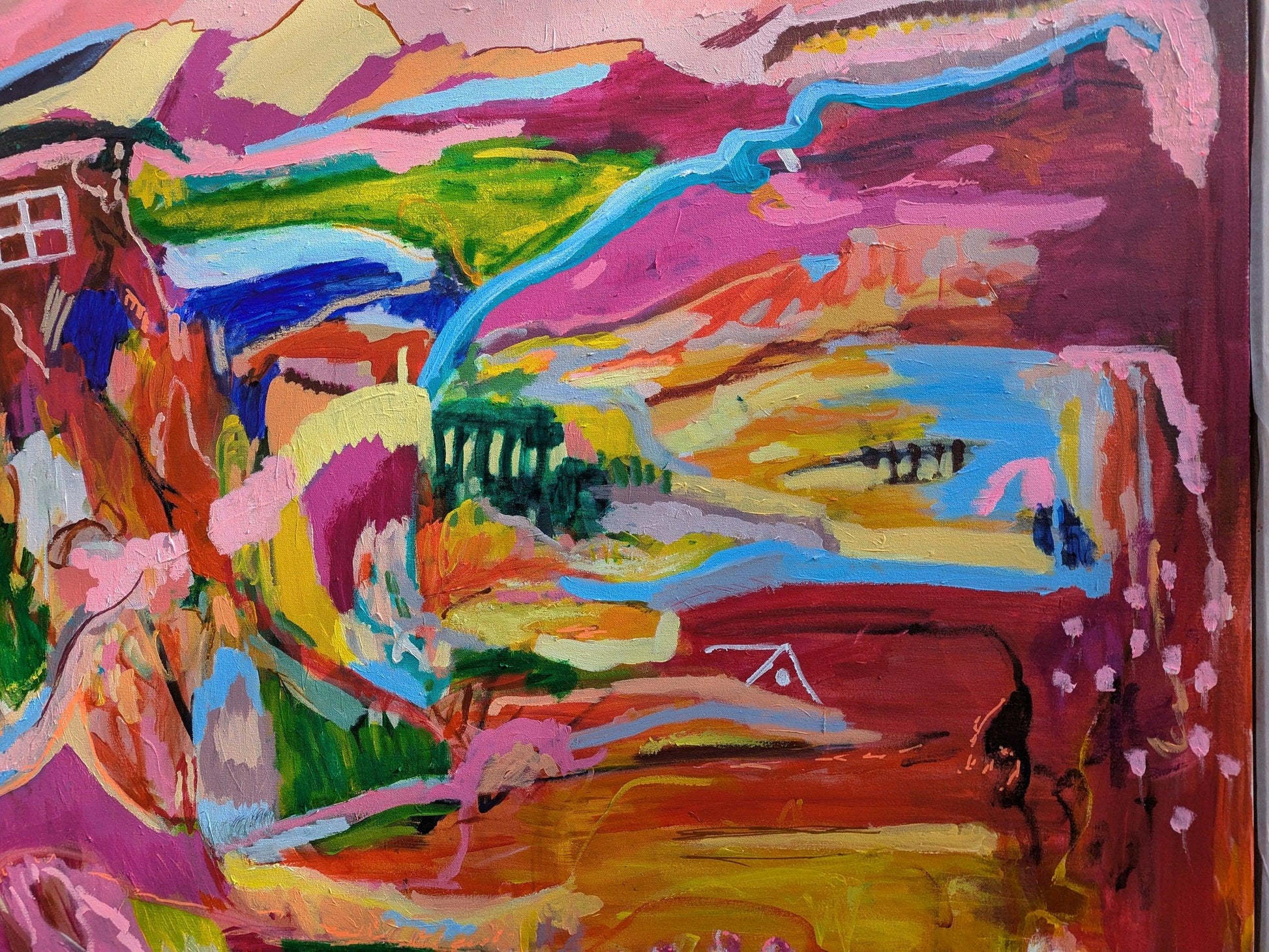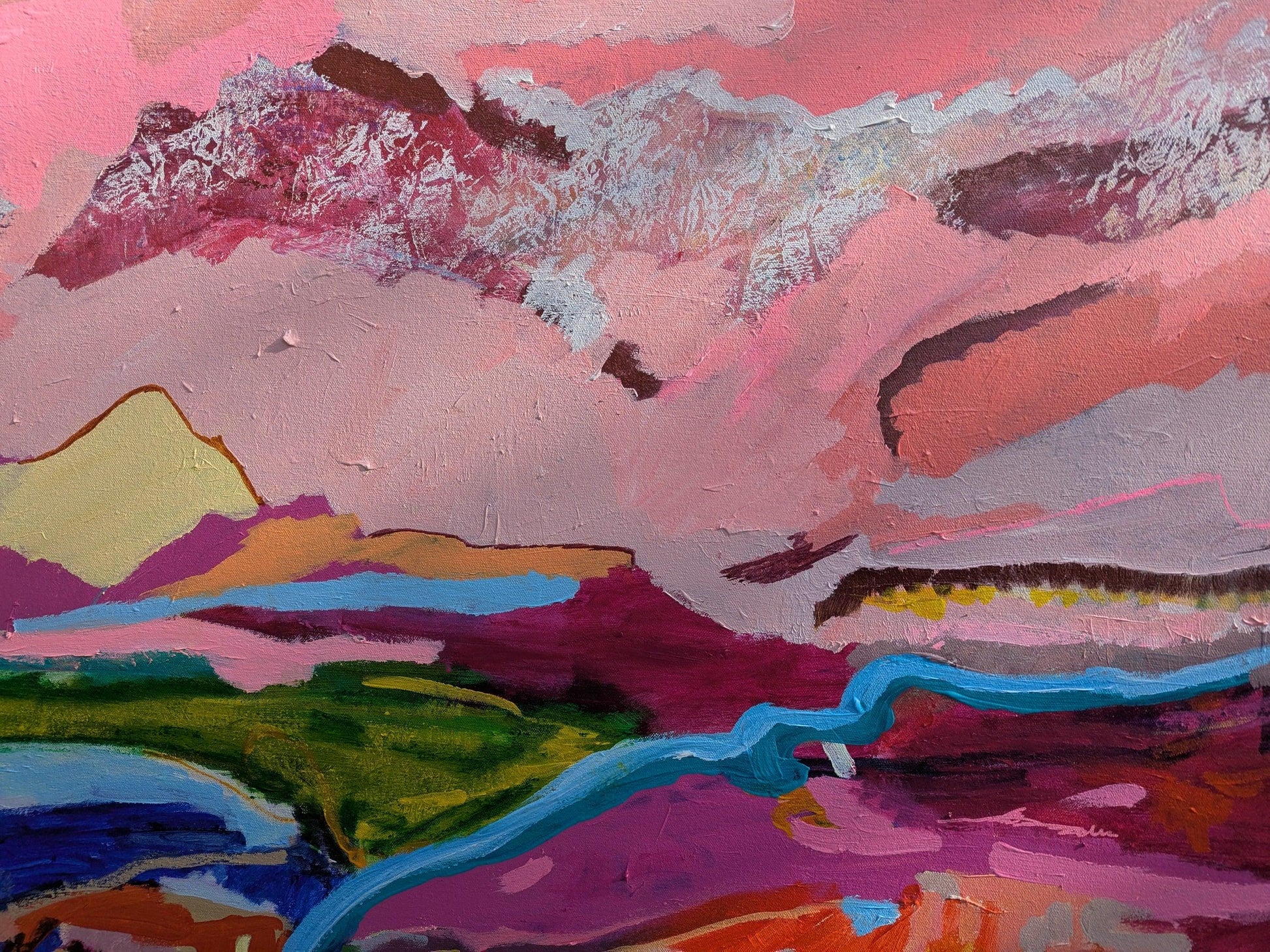 In this painting, memory flows like a river through colour — winding, shifting, never still. The Valley Where We Once Loved is an ode to a place that exists both in the world and in the heart — where love once bloomed beneath blushing skies and now lingers like perfume in the air.